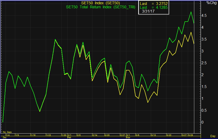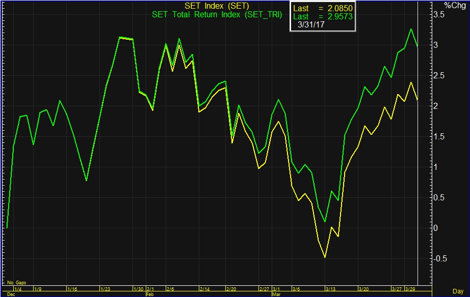 ผลตอบแทนหุ้นไทย ไตรมาส 1/2560