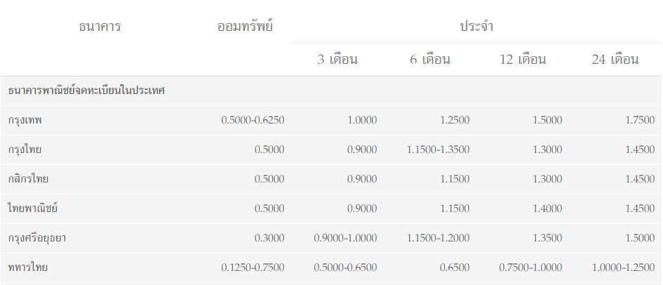• ข้อมูลอัตราดอกเบี้ยจากธนาคารแห่งประเทศไทย